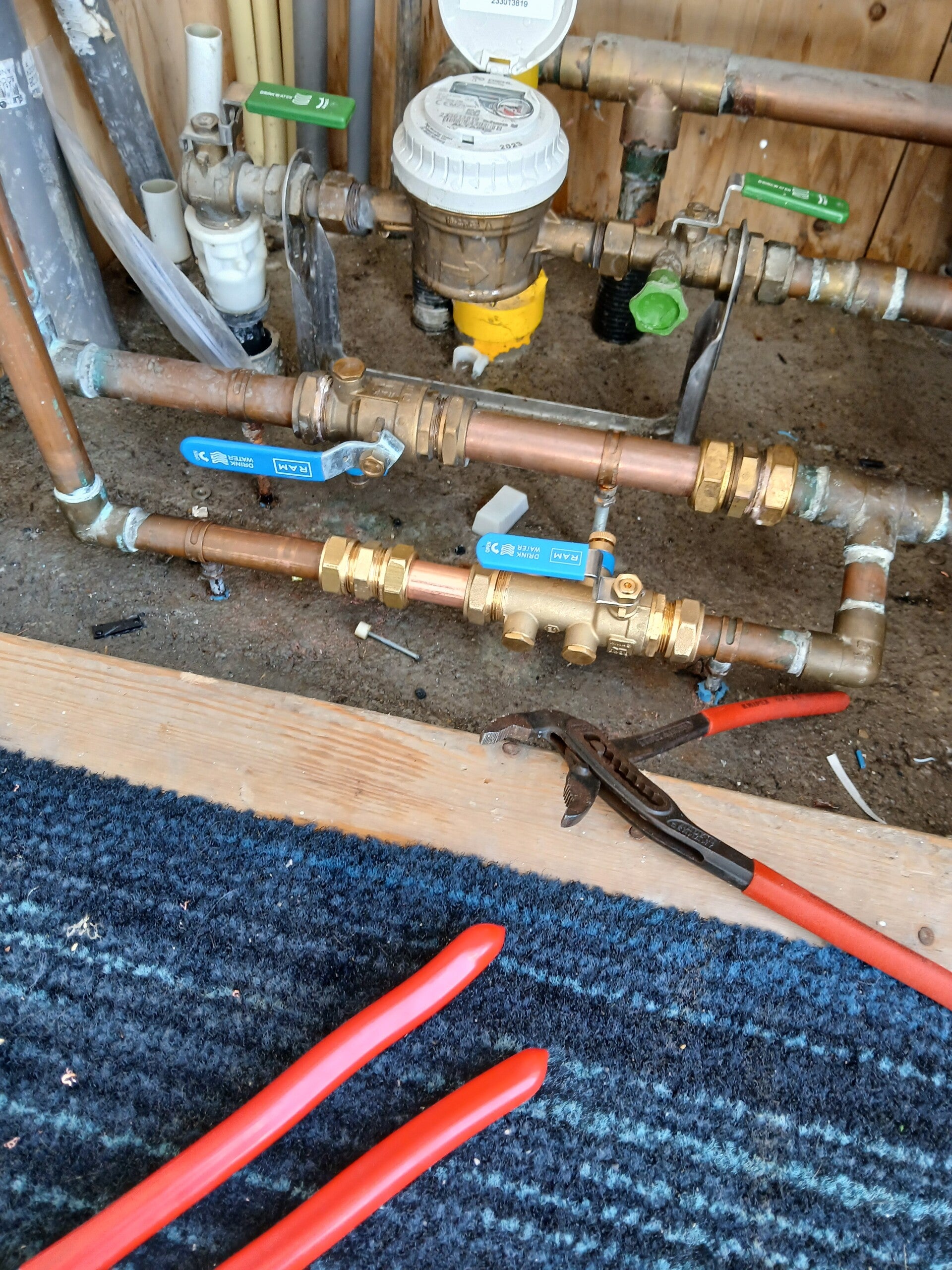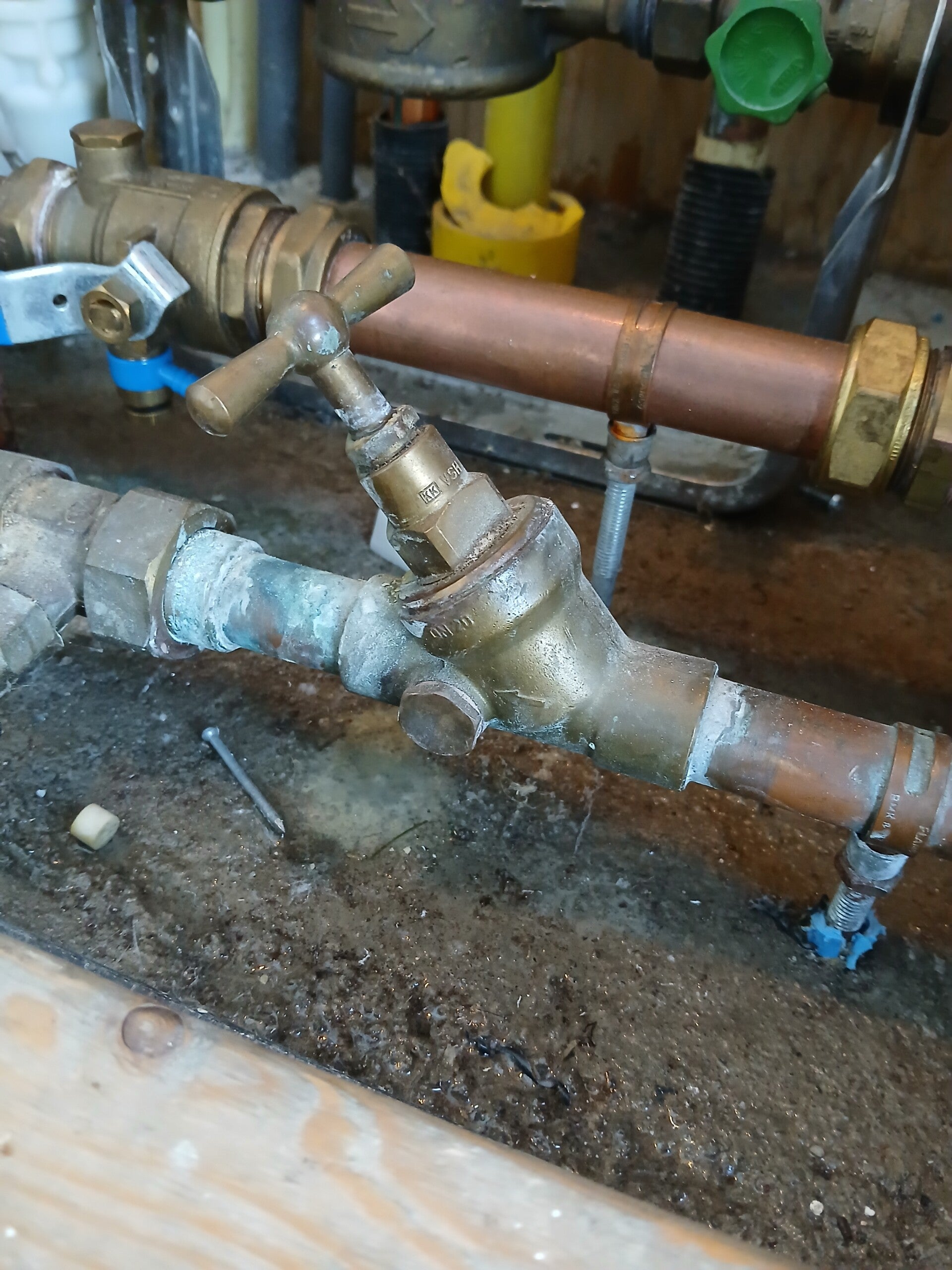 Wij hebben de oude koperen leiding met een ijzerzaag doorgezaagd en een nieuwe afsluit knelkraan tussen geplaatst. Vanwege dat de Afsluit knelkraan groter was dan de oude vertinde afsluitkraan moest de oude T-koppeling ook worden gedemonteerd. Daarvoor hebben wij een nieuwe knel koppeling en een stuk koperen leiding voor in ruil geplaatst.